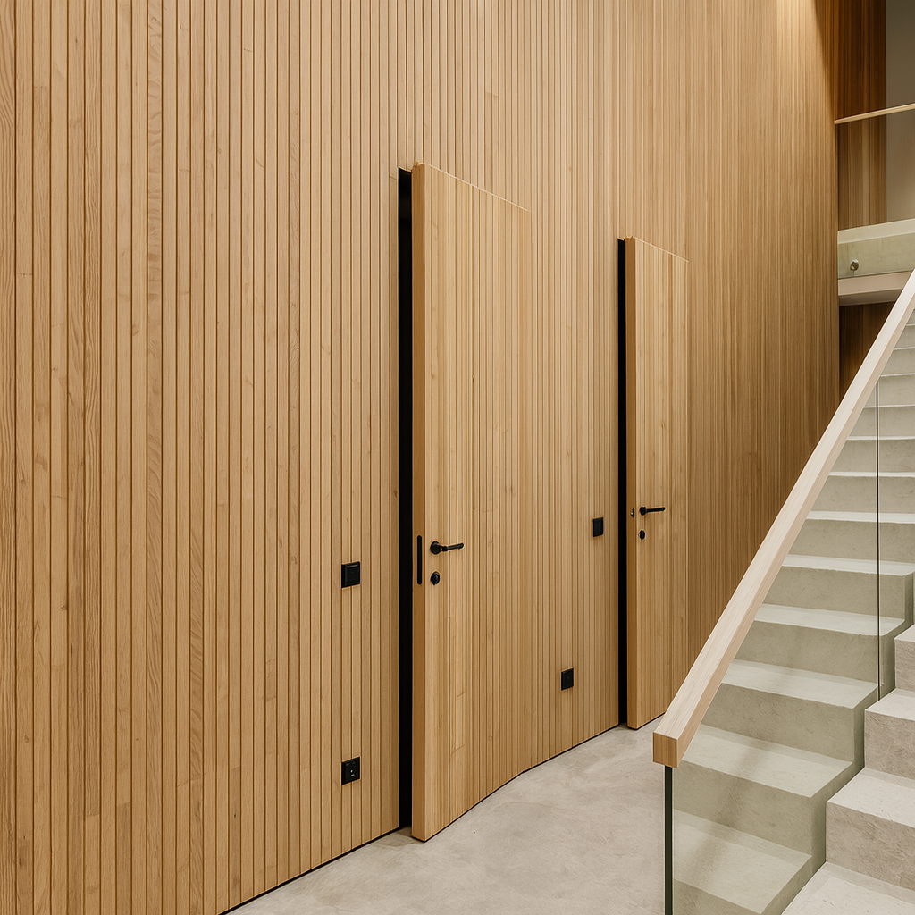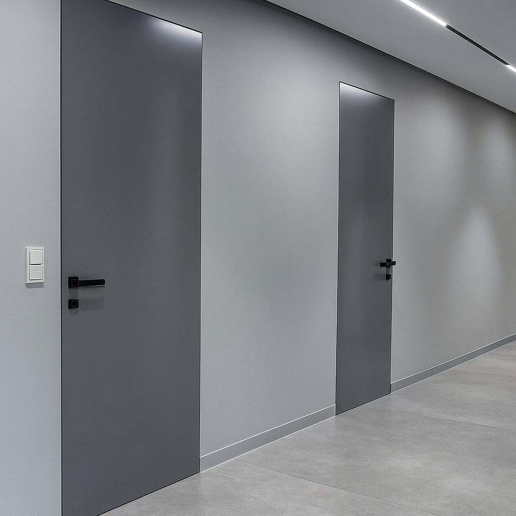 Flush-fitting frameless interior doors, long popular in European residential design, are now becoming a preferred choice in contemporary North American homes. Unlike conventional doors with visible jambs, our flush-mount doors evoke the clean, minimalist aesthetic of modern interior design. The concealed door frame, hidden hinges, and invisible striker create a seamless, luxurious look that elevates any living space.