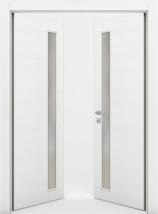 Perfectly suited for Single, Double, Pocket, Barn, By-pass, Bi-fold, and Magic door configurations, this model adapts to the needs of any living space. Whether placed in a hallway, a home office, or a shared common area, the Braga 1-Lite V door adds architectural character and functionality in equal measure.