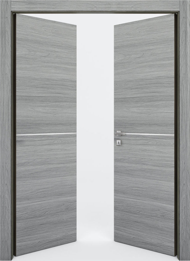 One of the standout features of this model is the horizontal decorative strip embedded precisely at the center of the slab. Available in six stylish finishes—Brushed Anodized, Brushed Gold Anodized, Brilliant Anodized, Shine Gold Anodized, Pre-Painted Brilliant Black, and Pre-Painted Matte Black—this accent brings a contemporary edge to the door's minimalist profile. Whether you choose a metallic tone for a sleek finish or a bold black for striking contrast, the strip adds a curated detail that personalizes the look without overwhelming the simplicity of the design.