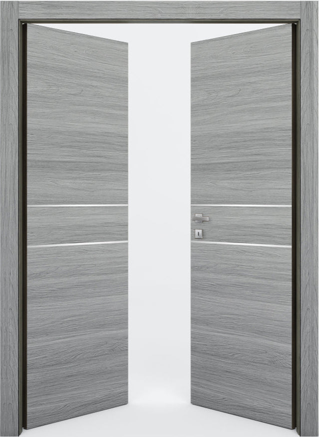 With a 1 3/4" door thickness and availability in Single Doors, Double Doors, Pocket Doors, Barn Doors, By-pass doors, Bi-fold doors, and Magic concealed doors, this model adapts effortlessly to a variety of installation formats. Custom sizing is also available, allowing seamless integration into both new builds and renovation projects.