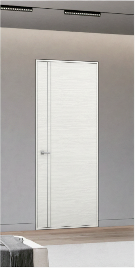 What sets the 2V model apart are the two vertical aluminum inlays, which introduce a sense of verticality and rhythm to the door’s face. These decorative strips are available in a curated range of finishes—Brushed Anodized, Brushed Gold, Brilliant Anodized, Shine Gold, Pre-Painted Brilliant Black, and Pre-Painted Matt Black—allowing you to tailor the visual tone of the door to your room’s palette and design intent.