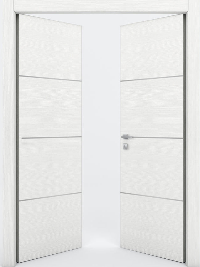 Compatible with multiple configurations, the Braga 3H can be ordered as a Single Door, Double Door, Pocket Door, Barn Door, By-pass, Bi-fold, or integrated into a Magic concealed system. Its availability in custom sizes ensures the door can be tailored precisely to your architectural needs, whether for standard rooms, unique openings, or space-saving applications.