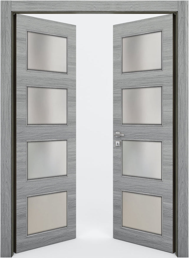 The Braga 4-Lite door in Olmo Matrix by Nova Doors captures a delicate balance between soft sophistication and clean architectural lines. Its Olmo Matrix finish, a calming blend of light gray and off-white tones, introduces an airy, modern touch while retaining a subtle woodgrain texture that adds warmth and dimension. This finish makes it ideal for spaces that prioritize brightness, harmony, and understated elegance.