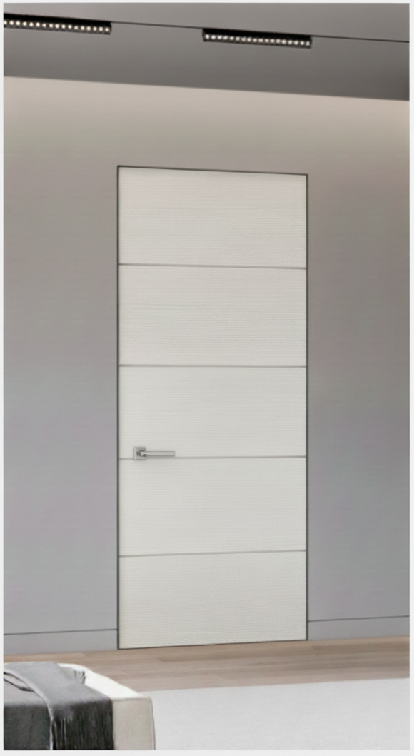 This 4H variation is distinguished by its four horizontal decorative strips, carefully applied to the surface of the door. These linear elements contribute a rhythmic and balanced aesthetic that adds movement and visual interest without overwhelming the design. The strips can be customized in a variety of elegant finishes—Brushed Anodized, Brushed Gold Anodized, Brilliant Anodized, Shine Gold Anodized, Pre-Painted Brilliant Black, or Pre-Painted Matt Black—making it easy to coordinate with your space’s hardware and overall palette.
