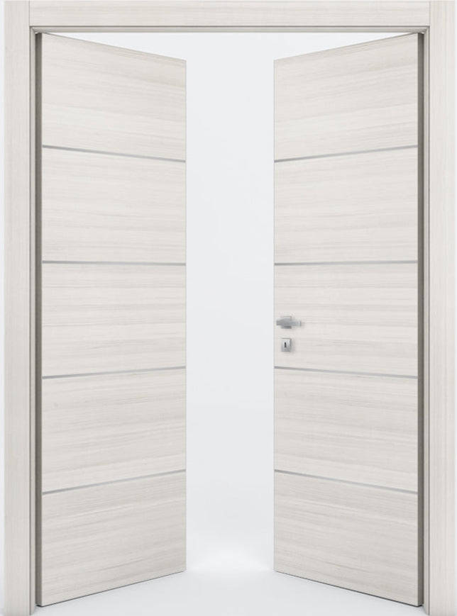 The standout design element of this model lies in the four horizontal decorative strips, seamlessly applied to the door’s surface. These accents introduce a refined architectural rhythm and can be customized in various finishes including Brushed Anodized, Brushed Gold Anodized, Brilliant Anodized, Shine Gold Anodized, Pre-Painted Brilliant Black, and Pre-Painted Matt Black. Each option lends its own personality, whether you're going for bold contrast or a subtle metallic glint.