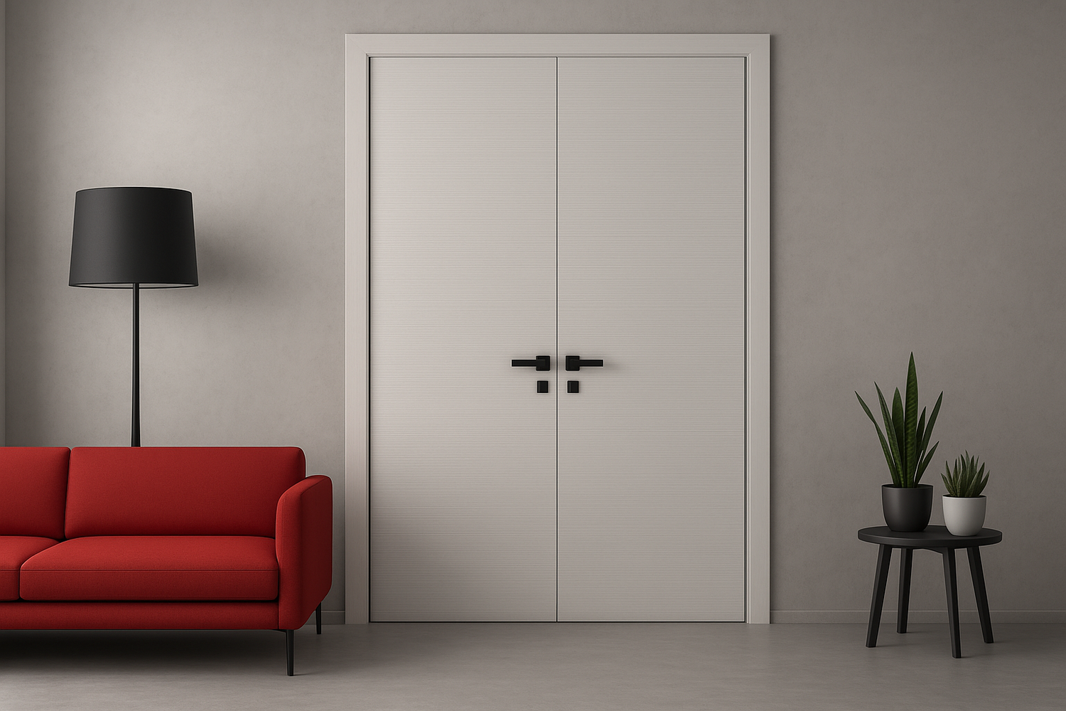 The door is offered in all major configurations—Single, Double, Pocket, Barn, By-pass, Bi-fold, and Magic doors—ensuring that your design vision remains cohesive across every room and installation style. Whether you're completing a minimalist hallway, upgrading a guest room, or renovating an entire home, this model’s adaptability in both form and size makes it a versatile favorite.